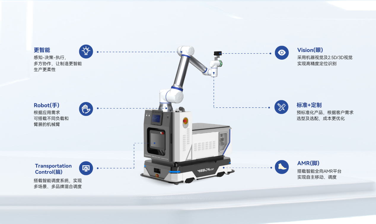全向挪动底盘(脚):采用全向驱动机构取驱控一体模组,正在狭小复杂中步履矫捷精准。独有的热插拔换电系统支撑全天候功课,底盘驻车不变系统确保机械臂高速活动时整车均衡。高鲁棒视觉系统(眼):搭载自研的2。5D视觉取视觉-惯性融合算法,正在远距离、动态及复杂光照下,仍能连结高精度的方针识别取抓取位姿估量能力。智能协同安排系统(脑):做为“地方神经枢纽”,该安排系统支撑多品类、多品牌设备接入,具备交通管制取流量优化能力,并能取MES、WMS、PLC等上层系统深度互联。正在此根本上系统操纵AI手艺,正在客户当地内,严酷满脚全球头部智能终端客户严苛数据平安办理的前提下,通过对当地出产数据的从动阐发取标注,驱动持续的、当地的强化进修。从而正在客户现场闭环地、自从地提拔模子鲁棒性取使命机能,建立从使命触发、出产节奏节制到模子进化均完全正在客户边完成的端到端从动化闭环。高靠得住施行单位(手):协做机械人产物笼盖3~30KG宽负载范畴,具备业内首个MTBF 10万小时测试认证,同时满脚31项功能平安要求,全面保障人机协做场景的平安取不变。通过一体化节制器承担“施行中枢”的脚色,让机械臂、底盘、视觉不再是三个模块,而是一个同一的工程系统,实正做到四肢举动协同。帮力客户将营业模式从局部的试点验证,无缝为可复制的规模化摆设。