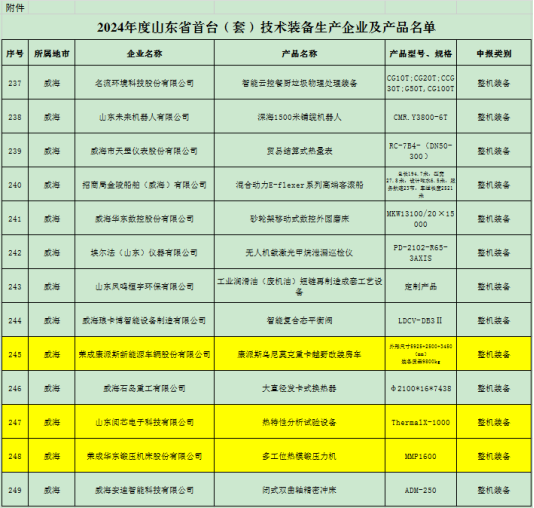 荣成经济开辟区3家企业上榜2024年度首台(套)手