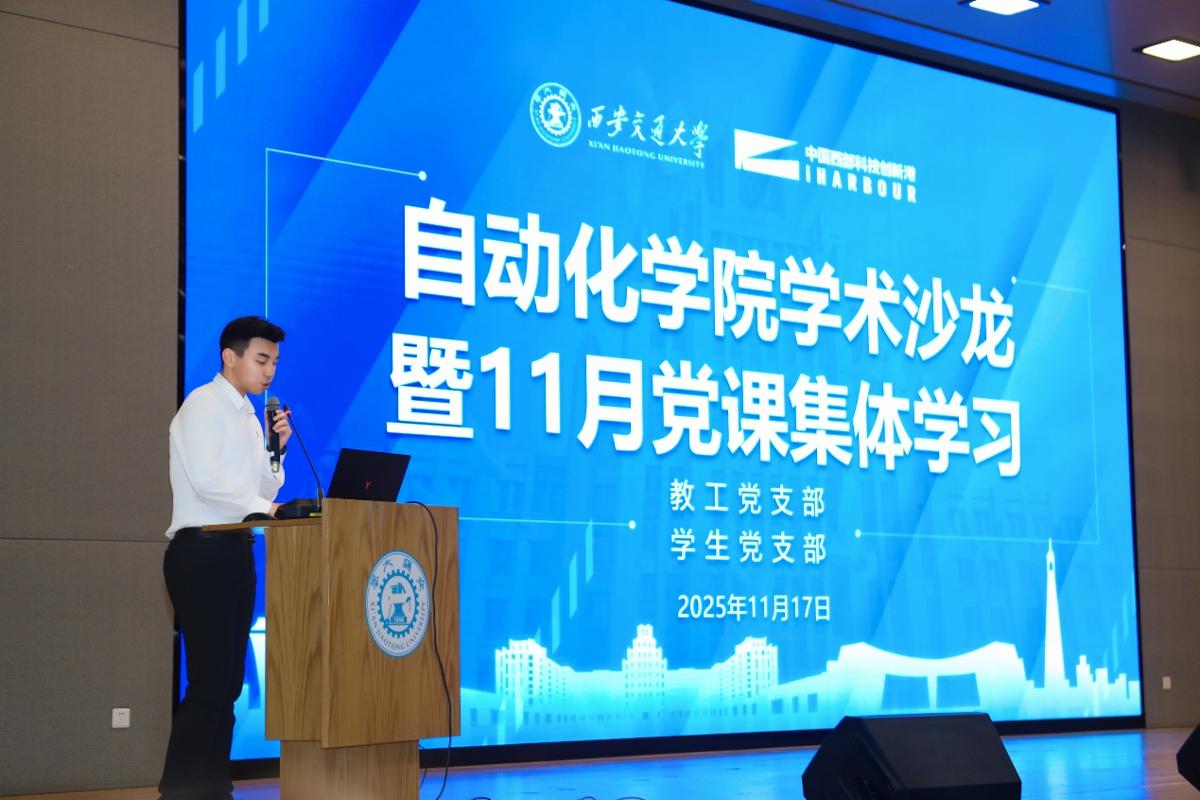 11月17日下战书,电信学部从动化学院学术沙龙暨11月集体进修勾当正在立异港5-2W204举行。电信学部党委副史锋、从动化学院院长杨清宇、从动化学院党总支副杨静、从动化学院教工党支部安豆、新疆大学智能科学取手艺学院学术副院长王聪,从动化学院全体研究生、准备、积极及师生代表配合参取。会议由电信学部博检测取自控党支部杨星宇掌管。