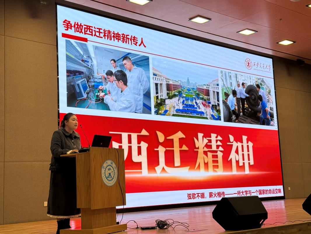 “笃·信”宣讲团宣讲人杨以涛开展“弦歌不辍,薪火相传”从题宣讲。她从青年、科研抱负取时代义务等角度切入,将西迁取青年成长现实相连系,用芳华视角讲述故事,激励正在场同窗进一步坚想、明白奋斗标的目的。